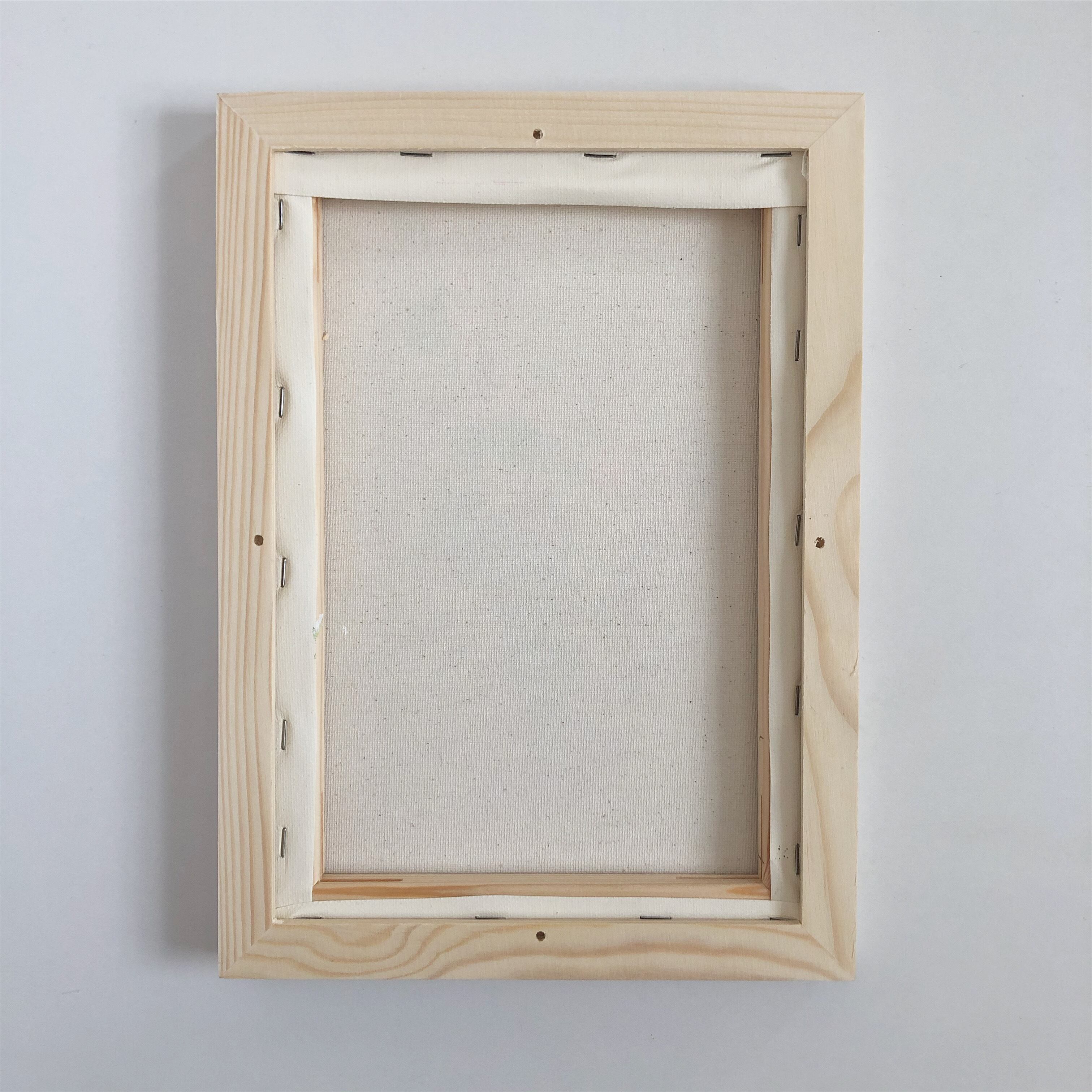 こちらの額縁はキャンバスをネジで固定するタイプの為、キャンバスの裏面木枠に穴が開く仕様となります。